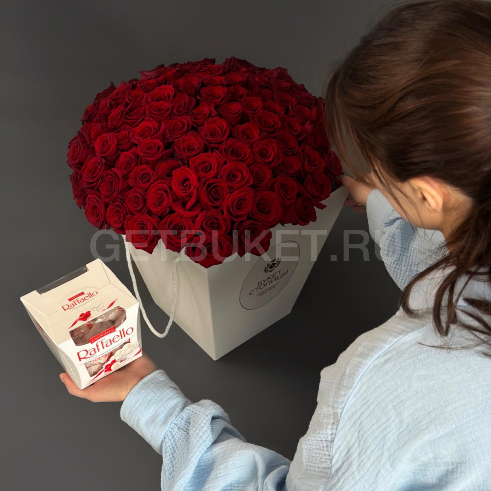 Букет из 101 розы с конфетами рафаелло