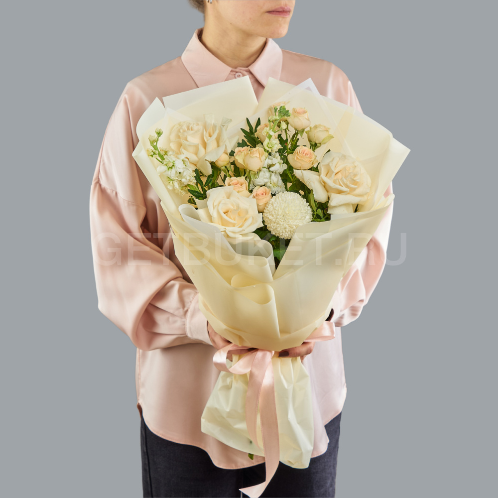 Возможны минимальные отличия букета от фотографии и допустимы отличия по цветовой гамме, так как цветы являются природным материалом и собираются вручную