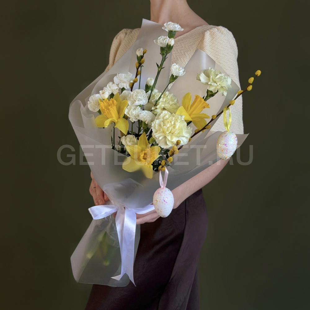 Букет из нарциссов, гвоздик и вербы4 040 ₽Букет из нарциссов, гвоздик и вербы 4 040 ₽ -