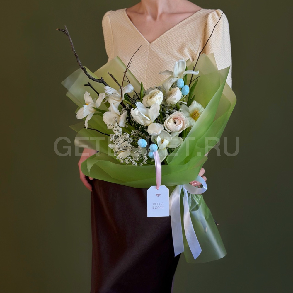 Пасхальный букет из орхидеи, вербы, генисты и лимониума с эустомой9 450 ₽Пасхальный букет из орхидеи, вербы, генисты и лимониума с эустомой 9 450 ₽ -