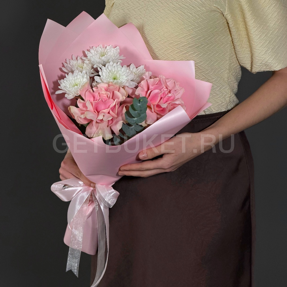 Букет из розовых роз, хризантем и гербер4 530 ₽Букет из розовых роз, хризантем и гербер 4 530 ₽