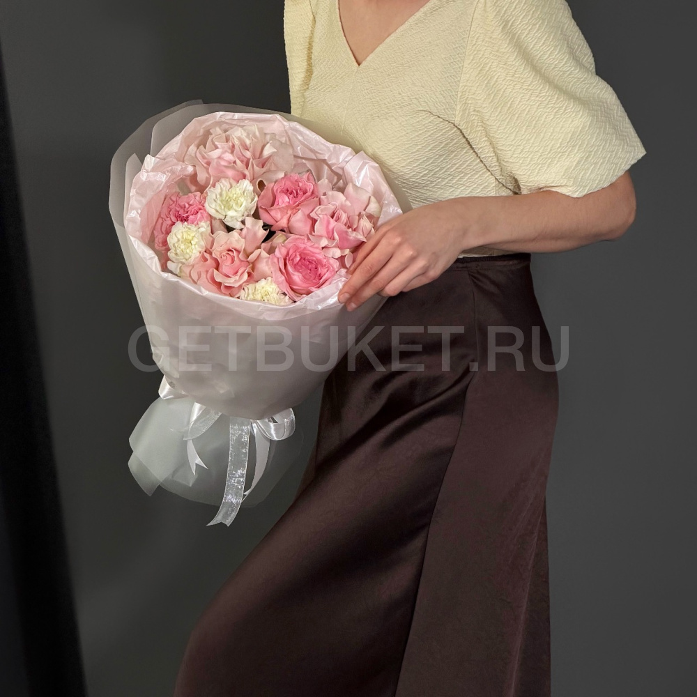 Букет розовых роз с гвоздиками4 740 ₽Букет розовых роз с гвоздиками 4 740 ₽ -